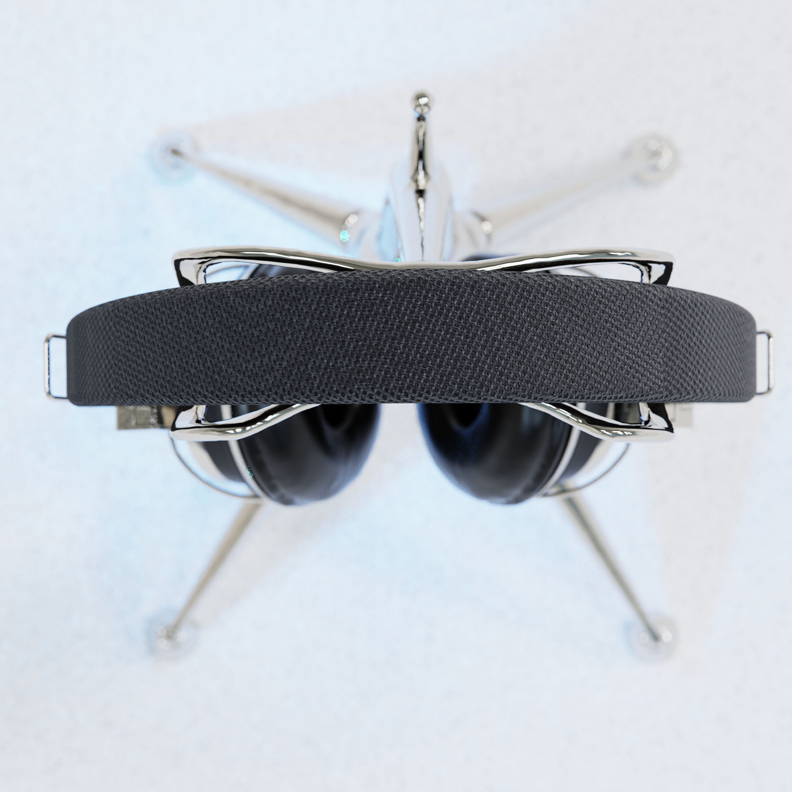 I experimented with different 3D material textures in SolidWorks, KeyShot, and Blender to visualize soft-touch finishes alongside metallic details. By creating a chrome headphone stand that contrasted with the Tzumi aesthetic, I emphasized a future-forward look that still felt familiar, achieving a perfect blend of comfort and innovation.