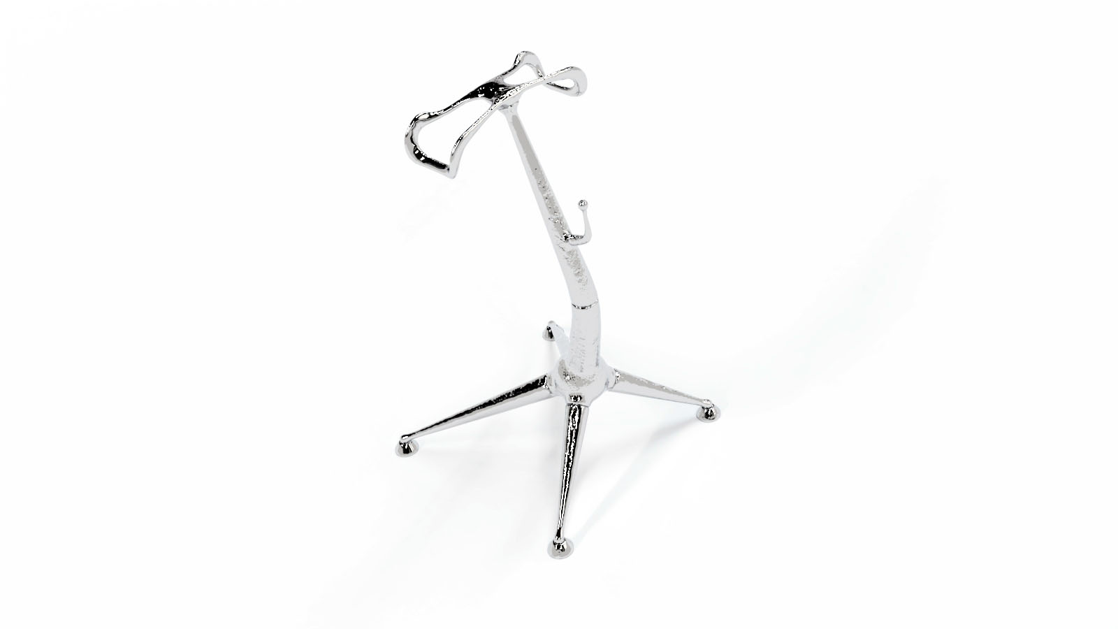 A contrasting stainless-steel, chrome-coated headphone stand designed to provide durable, ergonomic storage & functional support
